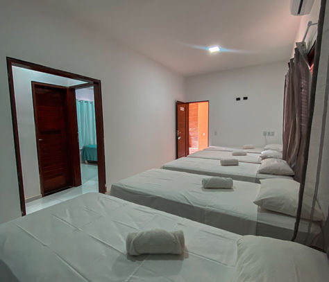O quarto Santa Catarina é uma opção perfeita para grupos maiores, acomodando até sete pessoas com conforto. Ele conta com sete camas de solteiro e dois quartos anexos, cada um com uma cama de casal, oferecendo flexibilidade para diferentes necessidades. Ideal para grupos de kite surfistas, o quarto tem fácil acesso à garagem e ao jardim, proporcionando praticidade e conveniência para quem deseja aproveitar a praia. Com bastante espaço e uma atmosfera acolhedora, o quarto Santa Catarina garante que todos tenham um lugar confortável para descansar após um dia de atividades ao ar livre.